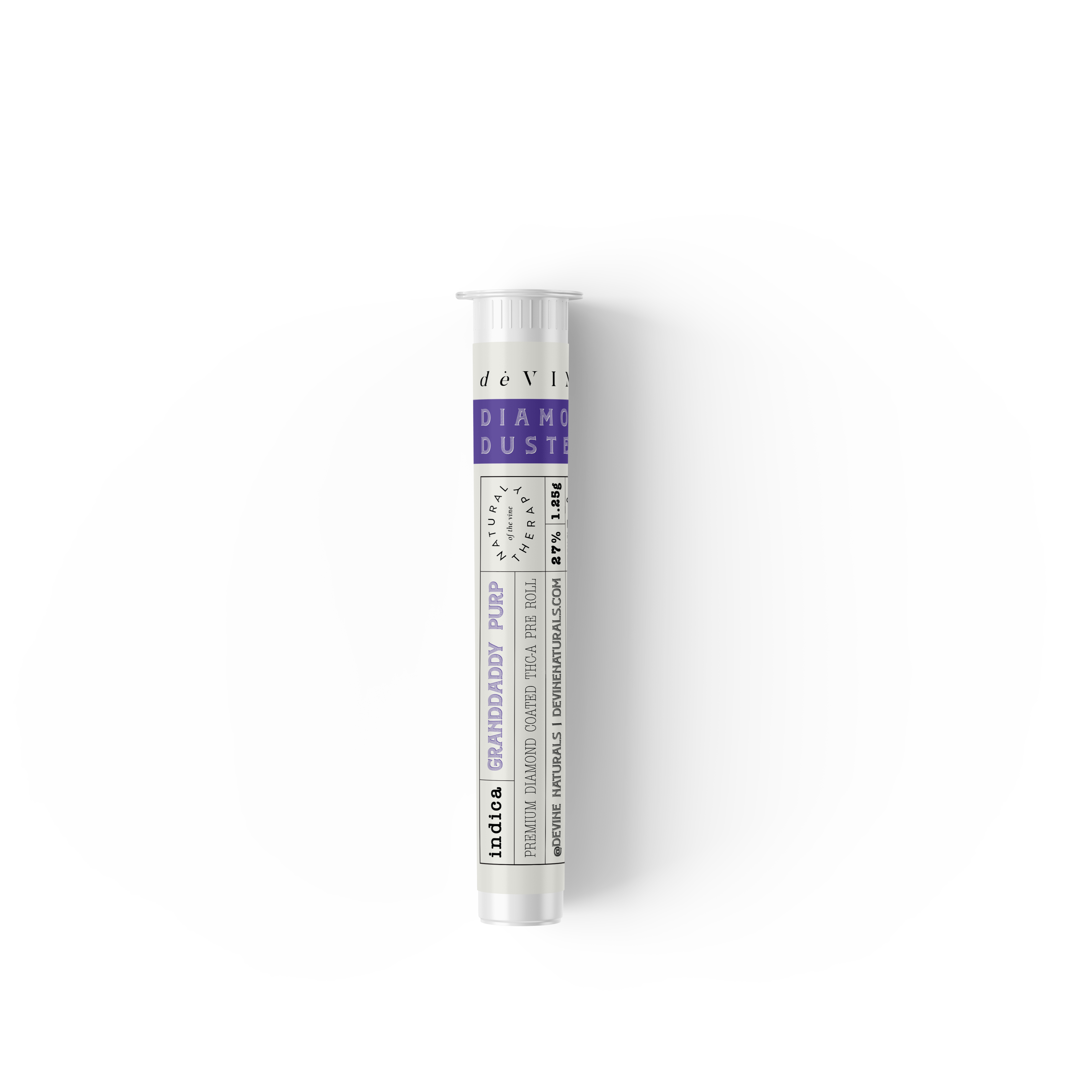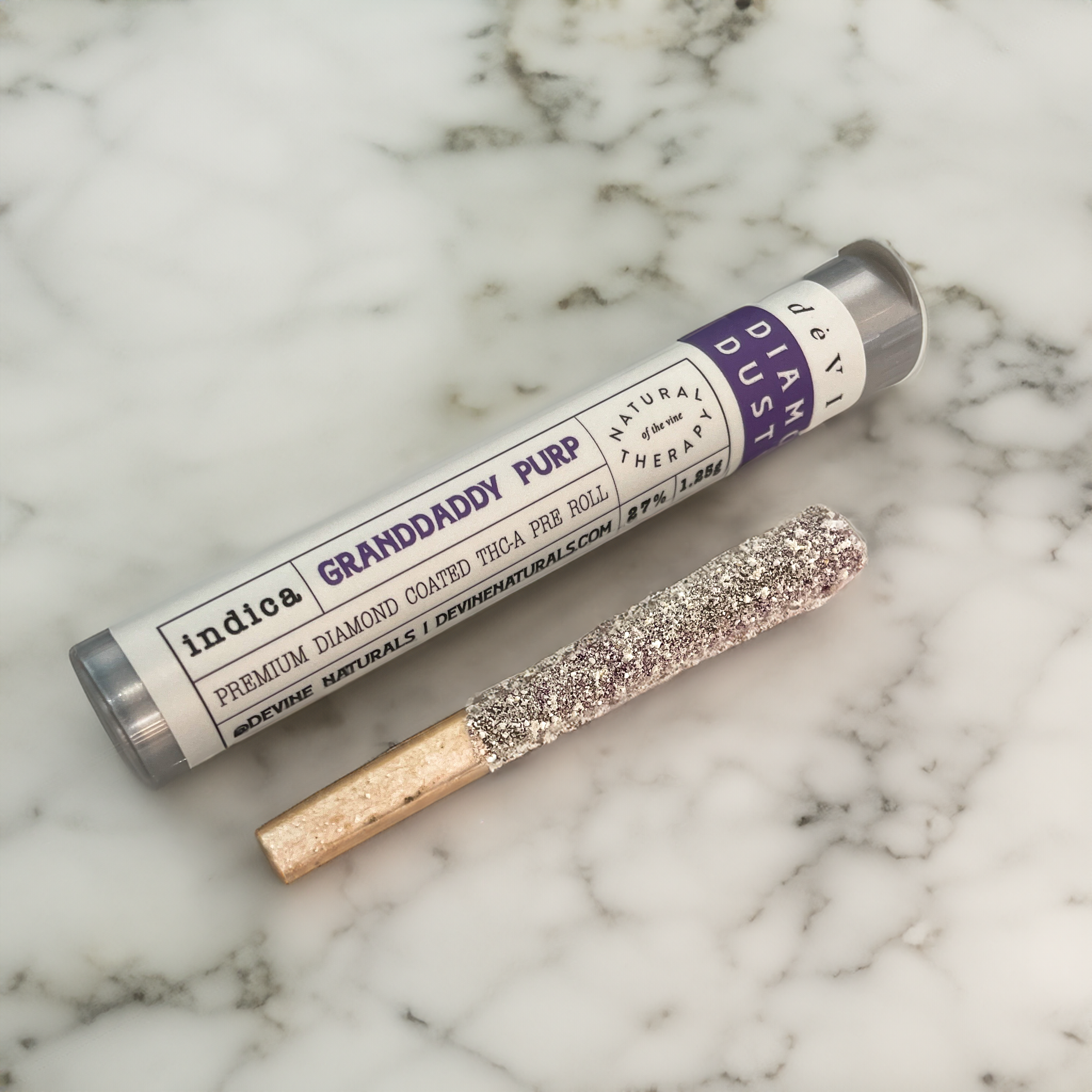 Introducing deVINE's Diamond Dusters, the ultimate pre-roll experience for cannabis enthusiasts. Each 1.25G THC-A pre-roll is meticulously crafted and coated in potent THC-A diamonds, promising a premium and powerful experience. Choose from three distinct strains to suit your desired effects. Indulge in the luxury of Diamond Dusters and elevate your cannabis experience to new heights.