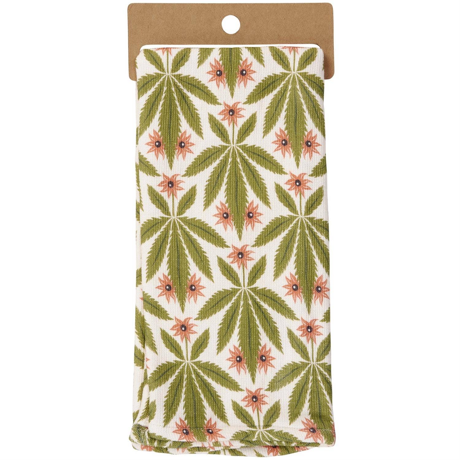 Give anyone that steps into personal space a vibe check with this super-soft cotton kitchen towel displaying a relaxing pot leaf pattern with a chill sentiment that reads "Farm To Couch."