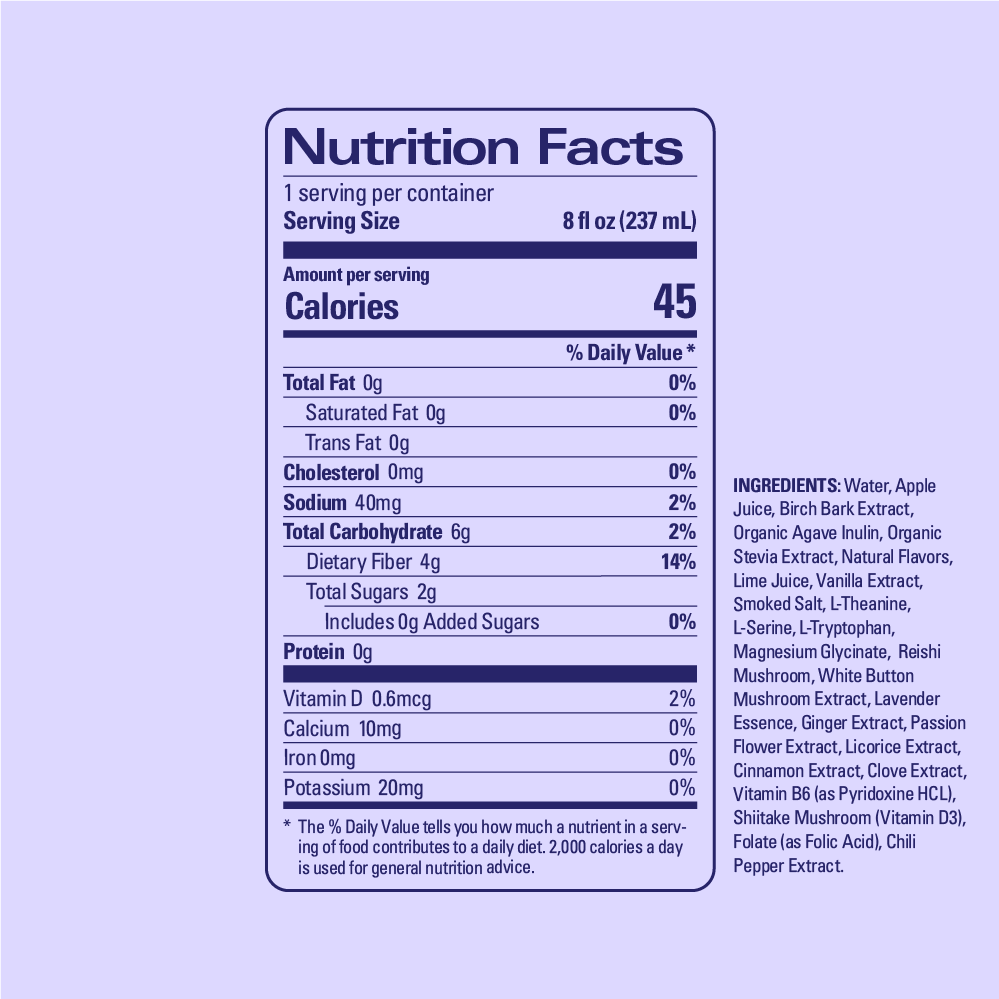 Like naked forest bathing at midnight. Non-alcoholic, non-caffeinated Lightwave is infused with adaptogens, nootropics, and botanics like Reishi Mushroom, L-Theanine, and L-Tryptophan to mellow your mind, balance reactions to stress, and help conjure inner peace.