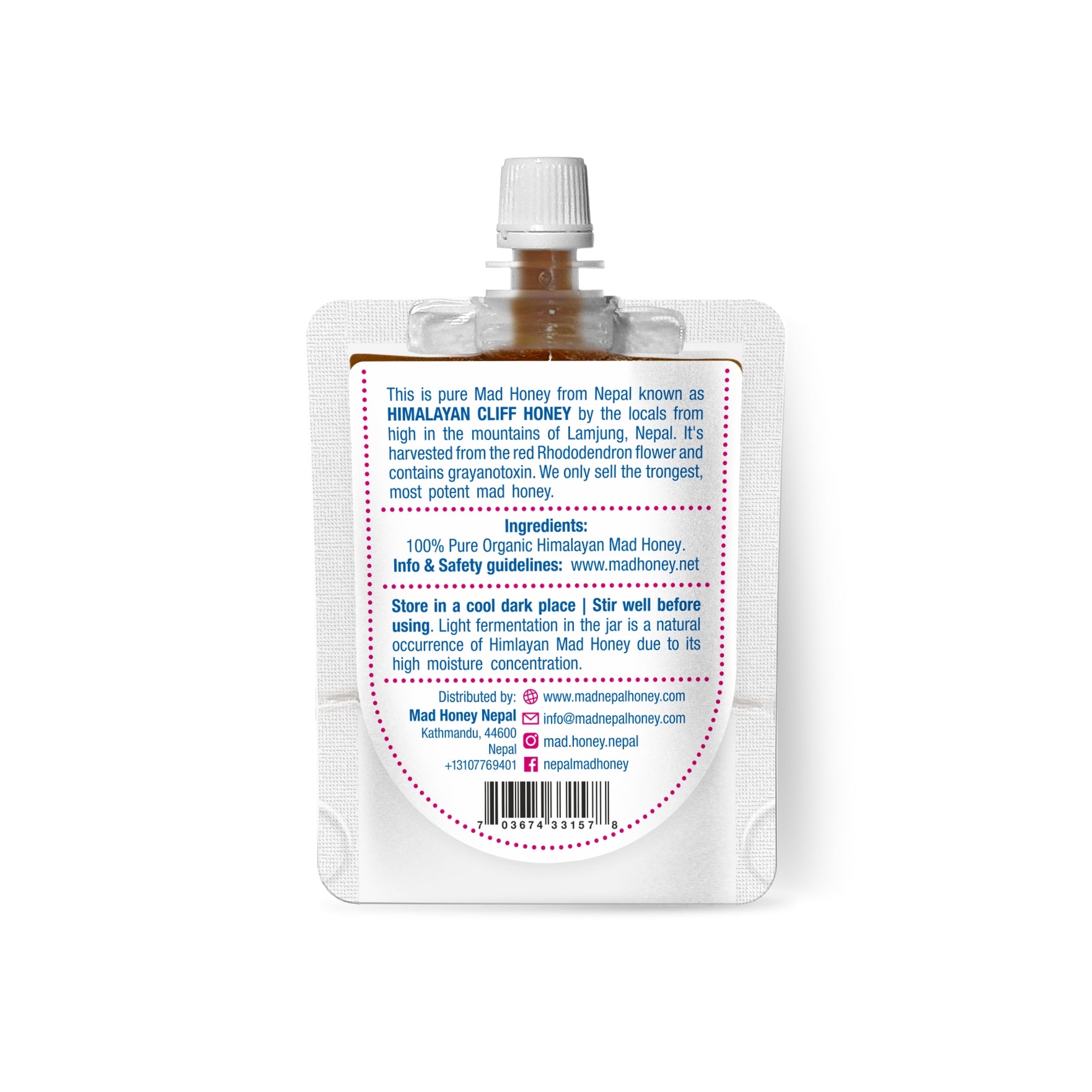 This is pure mad honey, known as “cliff honey” or पागल मह, by the locals from high in the mountains of Lamjung, Nepal.