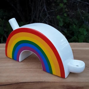 This fun novelty adult pipe is made of ceramic. It features a classic rainbow design in LGBT inspired rainbow colors.