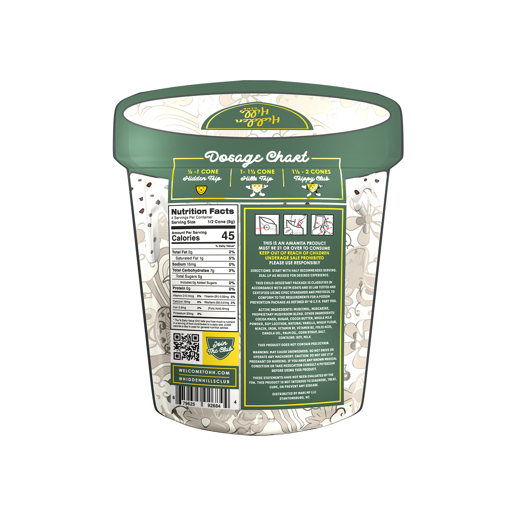 Dive into the world of Hidden Hills Trippy Mushie Conez, the ultimate treat for those looking to embark on a magical journey. Each 2-pack offers a unique dosage chart that lets you choose your adventure: one cone for a Hidden Trip, one and a half cones for a Hills Trip, or two cones to join the Trippy Club. Crafted with care, these cones are a Amanita product, featuring Muscimol and Muscarine.