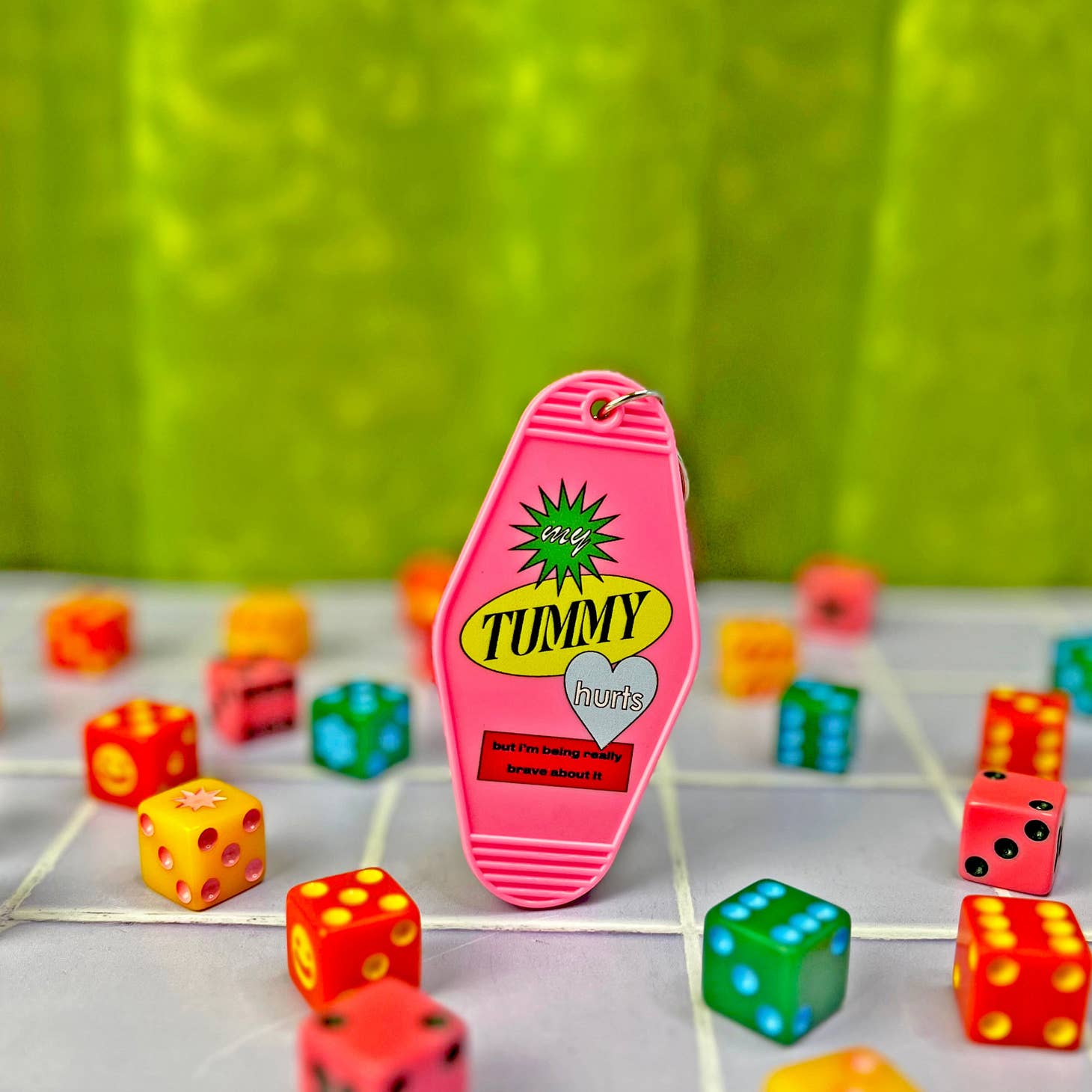 Vintage motel style keychain is 3.5" pink plastic with a 1.25" keyring for all your keychains.