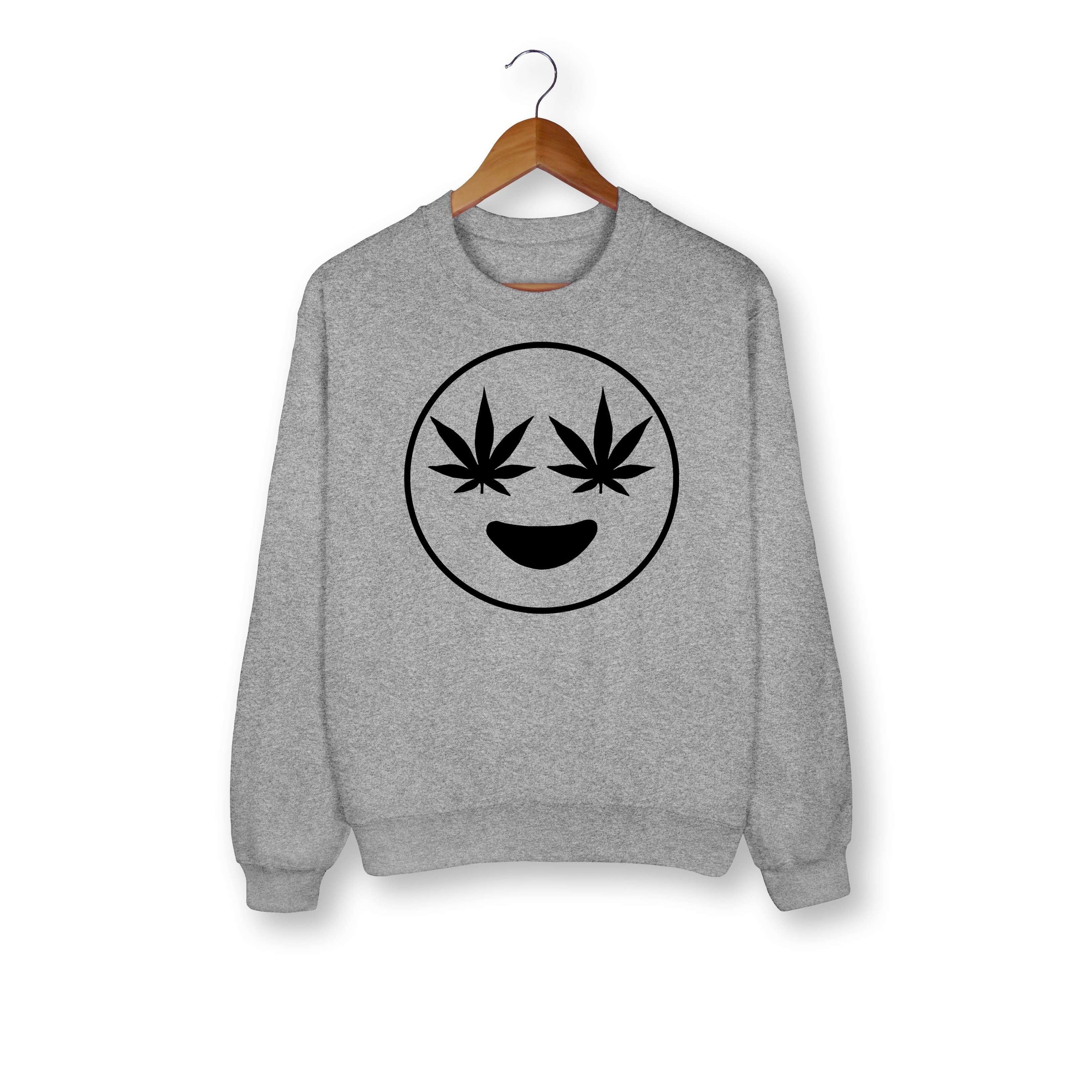 Wear your emotions on your sleeve with this classic heather grey crewneck sweatshirt, featuring an on-trend weed emoji expression! This pullover is perfect for casual days, letting everyone know when you're feeling...relaxed. Just chillin'!