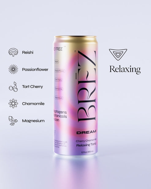 Carbonated water, Organic cherry juice concentrate, Lemon juice, Monk fruit juice concentrate, Reishi extract, Passionflower extract, Chamomile extract, Lavender extract, L-tryptophan, L-theanine, Glycine, Magnesium blend