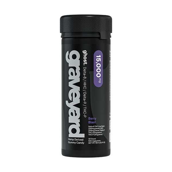 Ghost Graveyard Blend Gummies offer a hauntingly good way to experience a blend of potent cannabinoids. Each jar is packed with 30 gummies, with each gummy delivering a powerful 500mg blend of Delta-8 Live Resin, HHC, Delta-9, and THC-P. This expertly crafted combination provides a well-rounded experience for those seeking the full spectrum of hemp-derived benefits. Perfect for relaxation, creativity, or unwinding after a long day, these gummies are your key to a supernatural experience.
